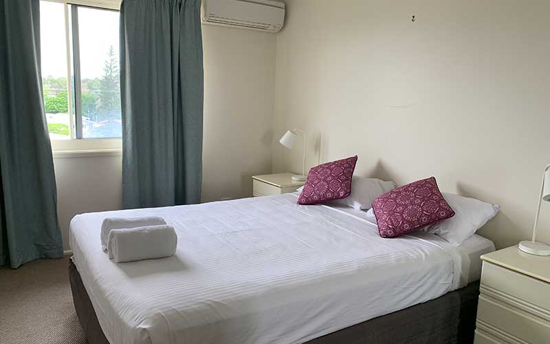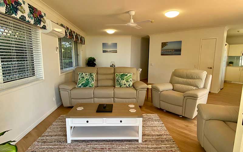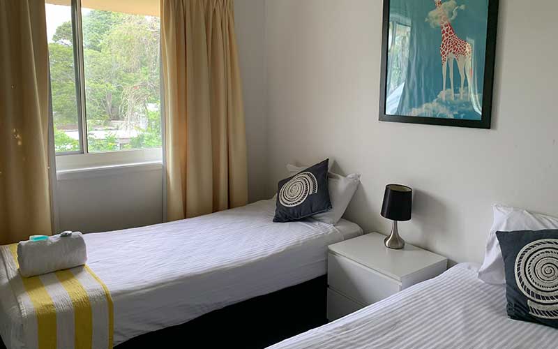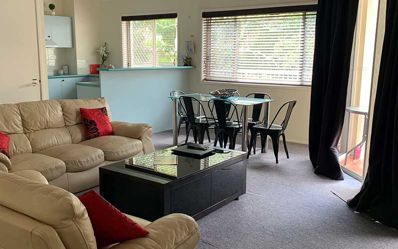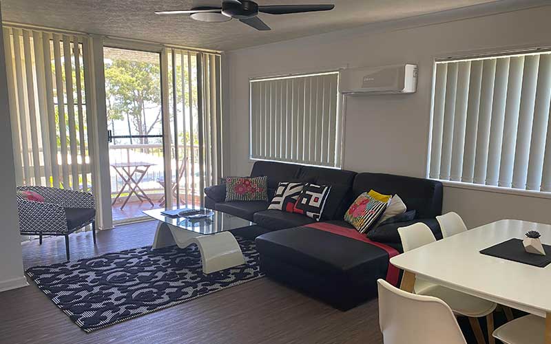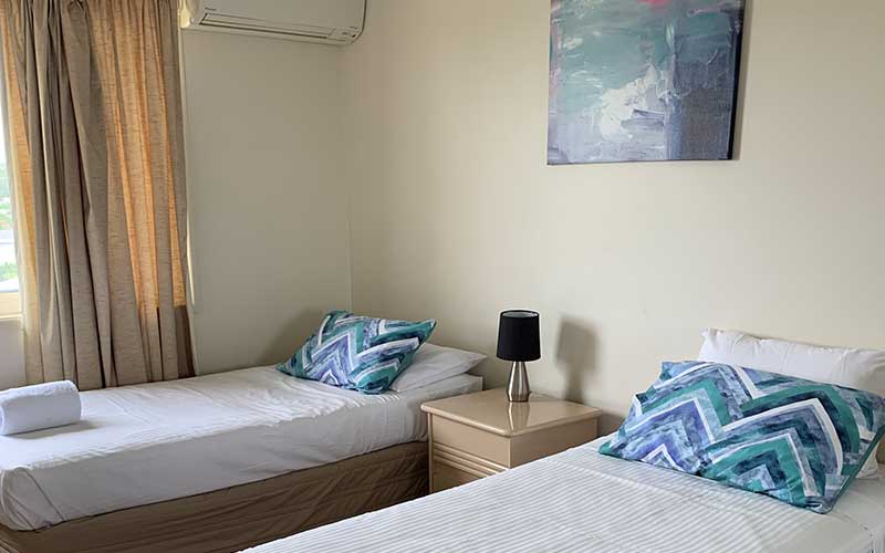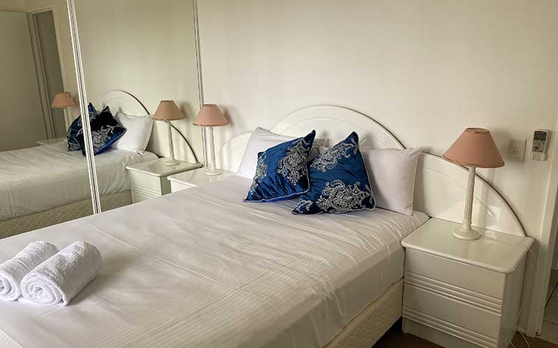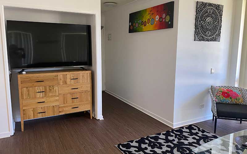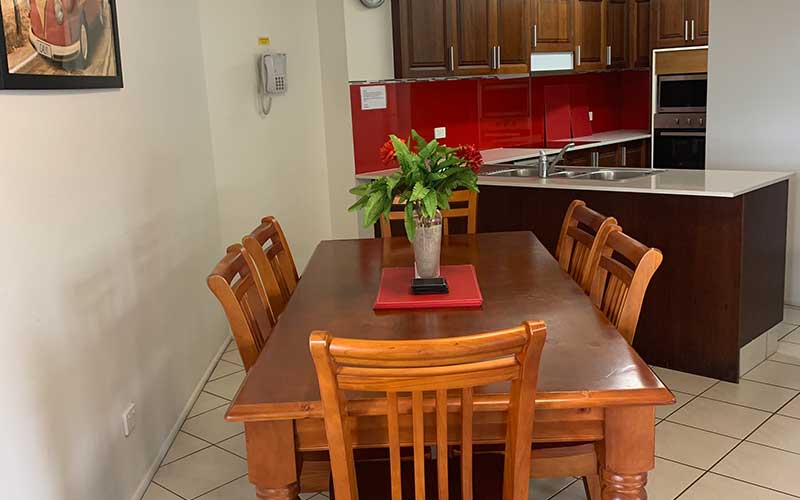 Large fully self-contained air conditioned garden view apartment with private balcony and outdoor seating. The apartment features a fully equipped kitchen, open-plan lounge and dining rooms with flat screen TV’s in the lounge room and main bedroom.