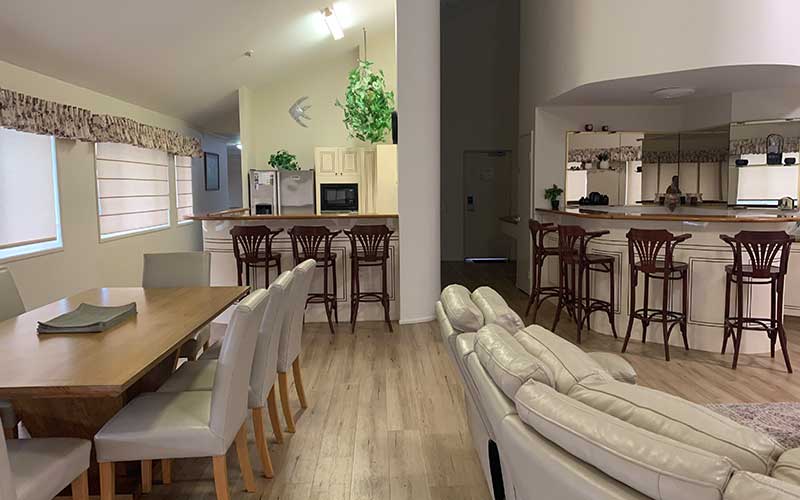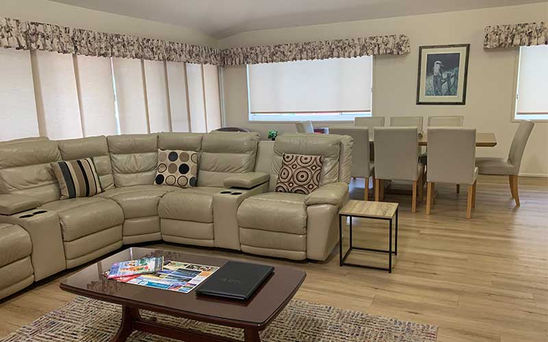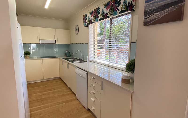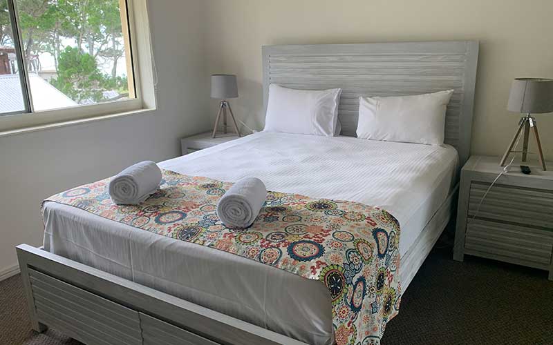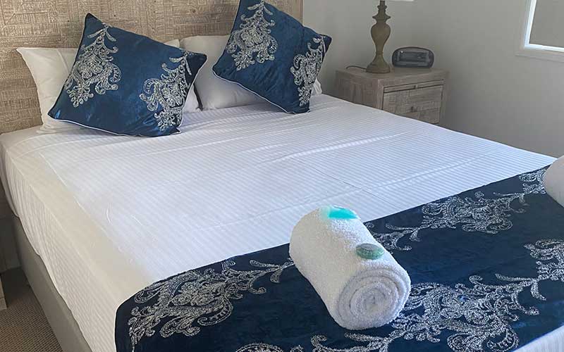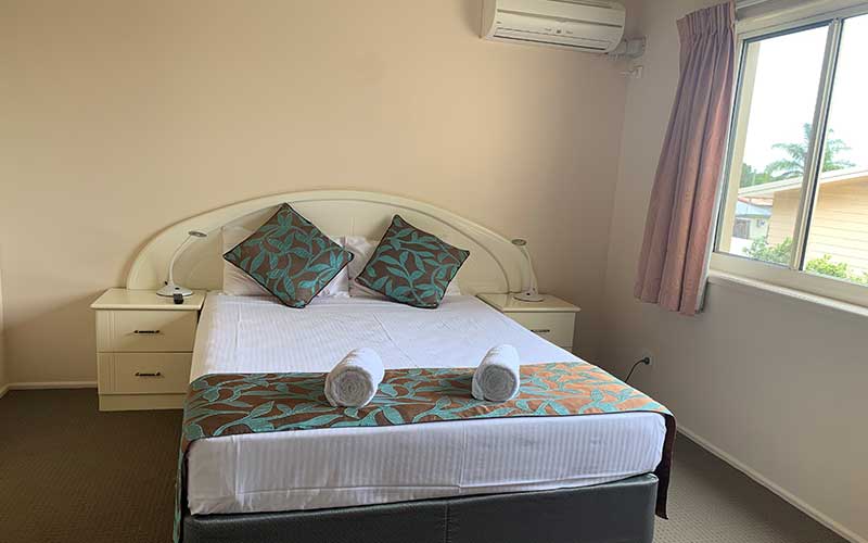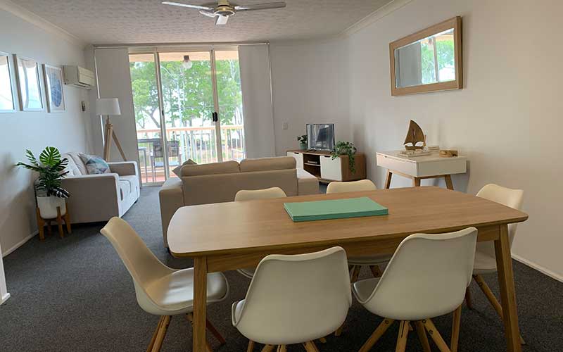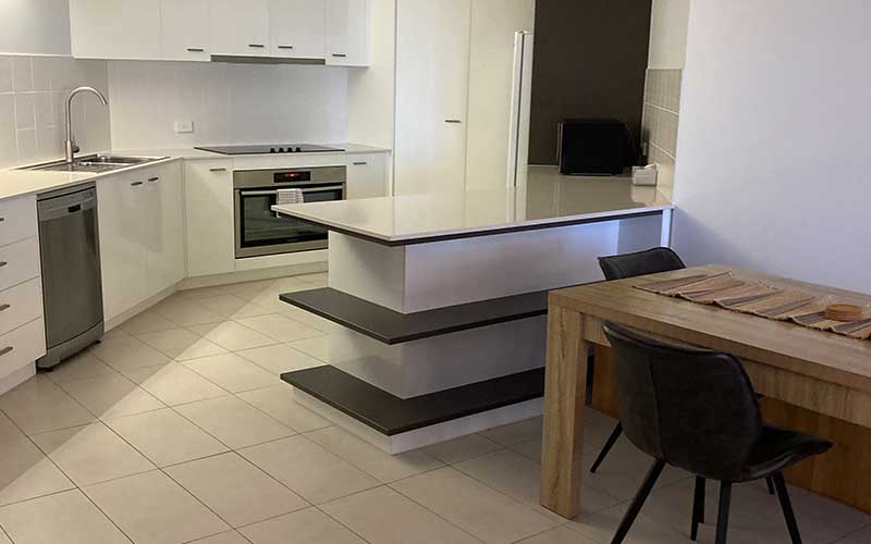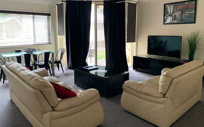 Large fully self-contained air conditioned garden view apartment with private balcony and outdoor seating. The apartment features a fully equipped kitchen, open-plan lounge and dining rooms with flat screen TV’s in the lounge room and main bedroom.