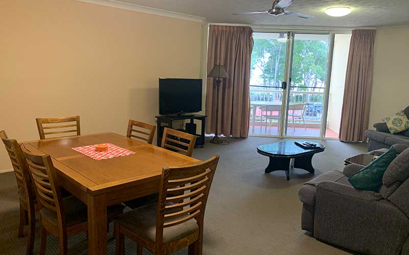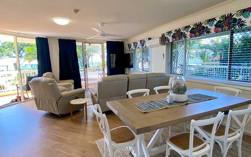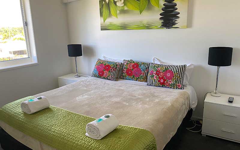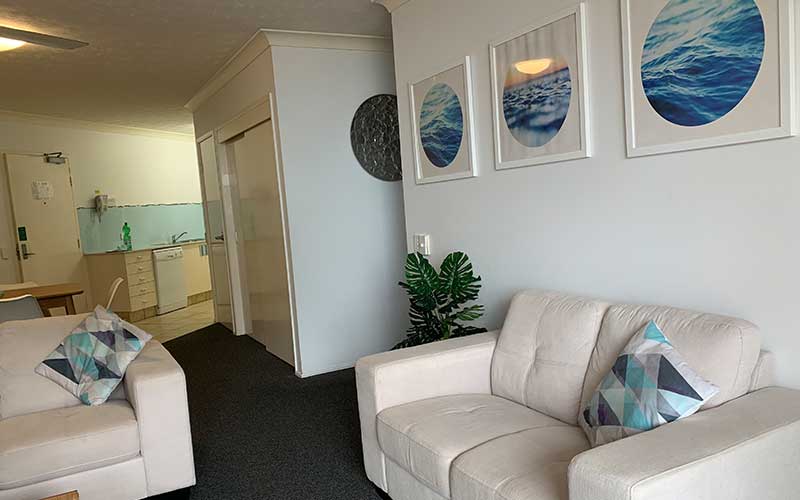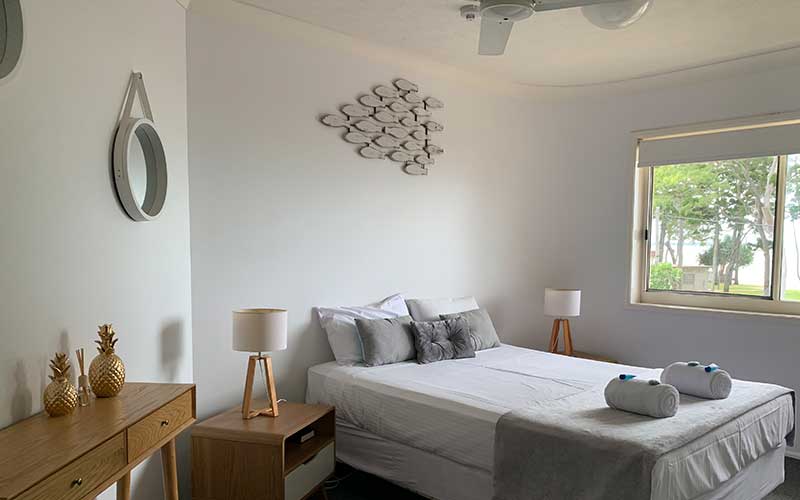 Large fully self-contained air conditioned ocean view apartment with private balcony and outdoor seating. The apartment features a fully equipped kitchen, open-plan lounge and dining rooms with flat screen TV’s in the lounge room and main bedroom.