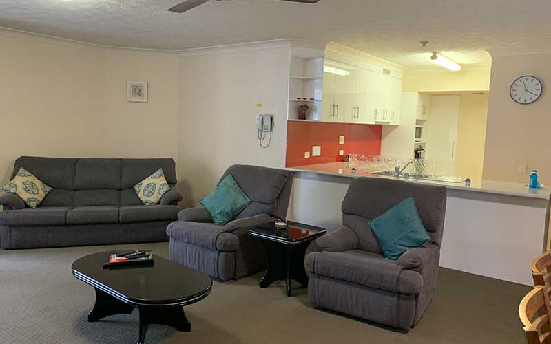 Extra large fully self-contained air conditioned 3 bedroom / 2 bathroom ocean view apartment which features a large private balcony with outdoor seating overlooking the salt water pool and gardens in addition to the ocean. This apartment features a fully equipped kitchen, open-plan lounge and dining rooms with flat screen TV’s in the lounge room and main bedroom.